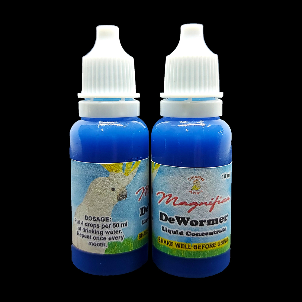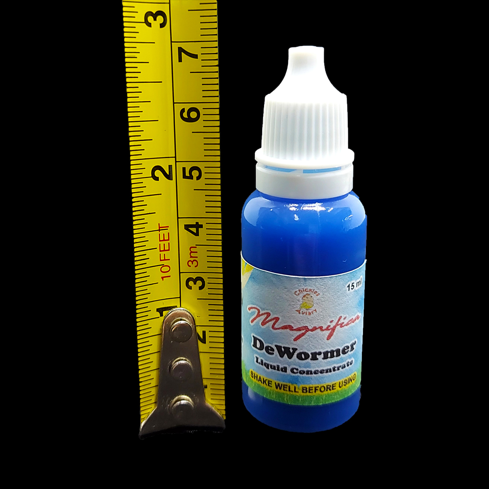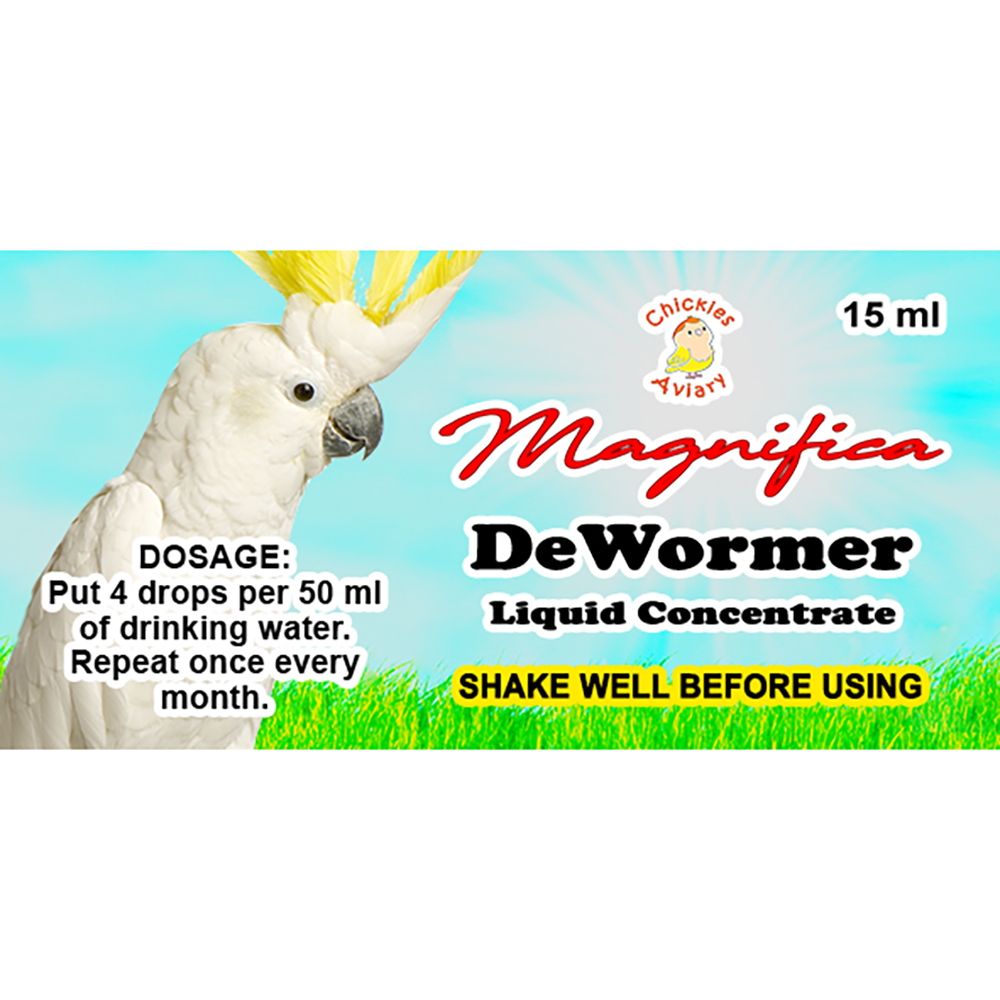 Magnifica DeWormer Liquid Concentrate is used for total worm control of aviary birds. It contains rapidly acting ingredients that effectively kills all intestinal worms including Thread Worm, Tapeworm, Roundworm, Caecal Worm, and Hook Worm.