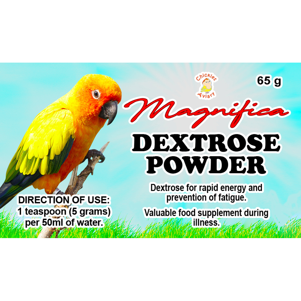 Simply mix the recommended amount of dextrose powder with your bird’s food or dissolve it in their drinking water.