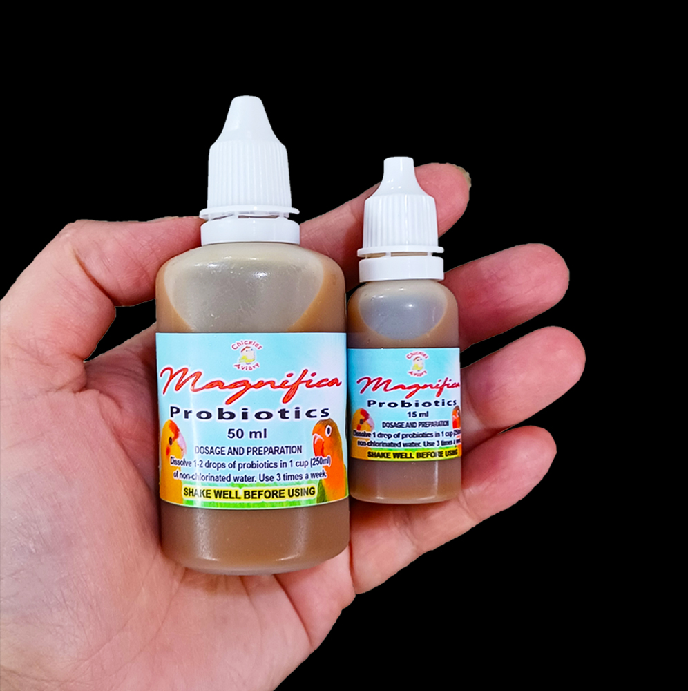 Our probiotics are easy to administer. Simply drop the recommended amount onto your bird’s food or mix it with their water.
